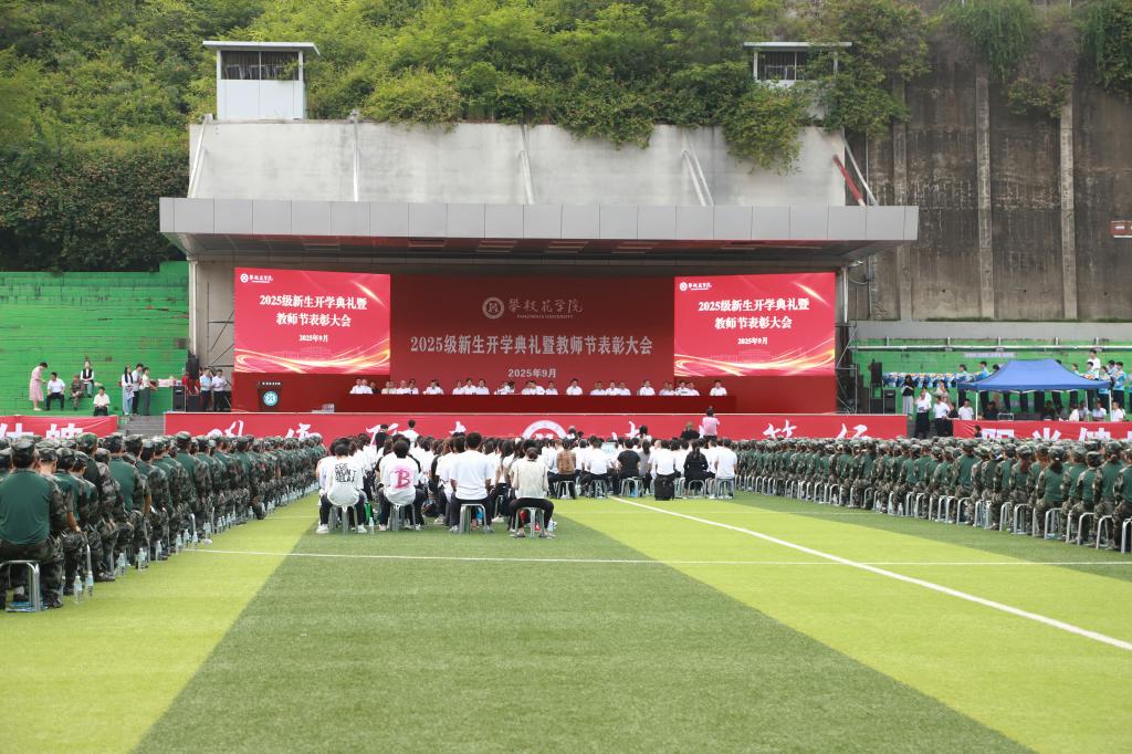 学校党政群团部门、各教学单位负责人、教师代表、校友代表及全体2025级新同学共4500余人参加大会。