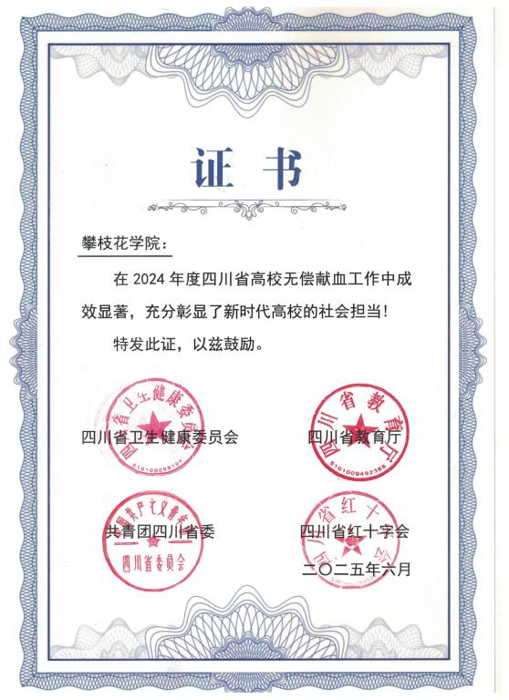 近日,四川省卫生健康委员会、四川省教育厅等单位对我校在2024年度全省高校无偿献血工作中的突出表现予以表彰。