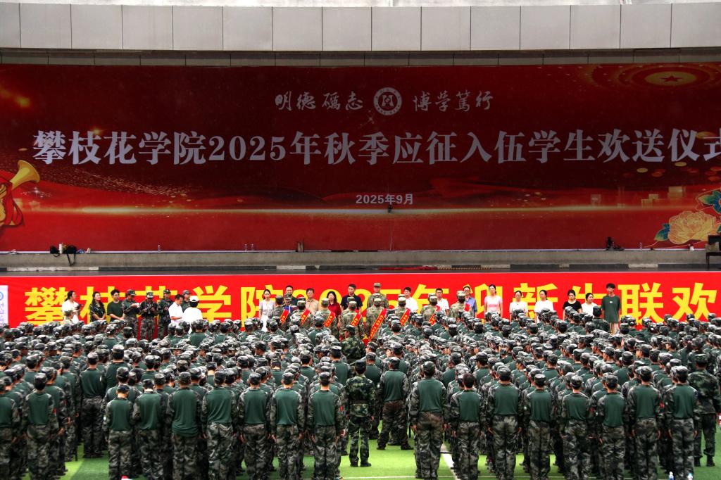 9月19日上午,我校在新生军训场隆重举行2025年秋季大学生应征入伍欢送仪式。校党委常委、副校长朱云生出席仪式并讲话。攀枝花市东区区委常委、人武部上校部长康贺卫,各二级学院分管学生工作负责人、辅导员代表及2025级全体军训学员共同参加仪式,欢送15名即将奔赴军营的攀大学子。