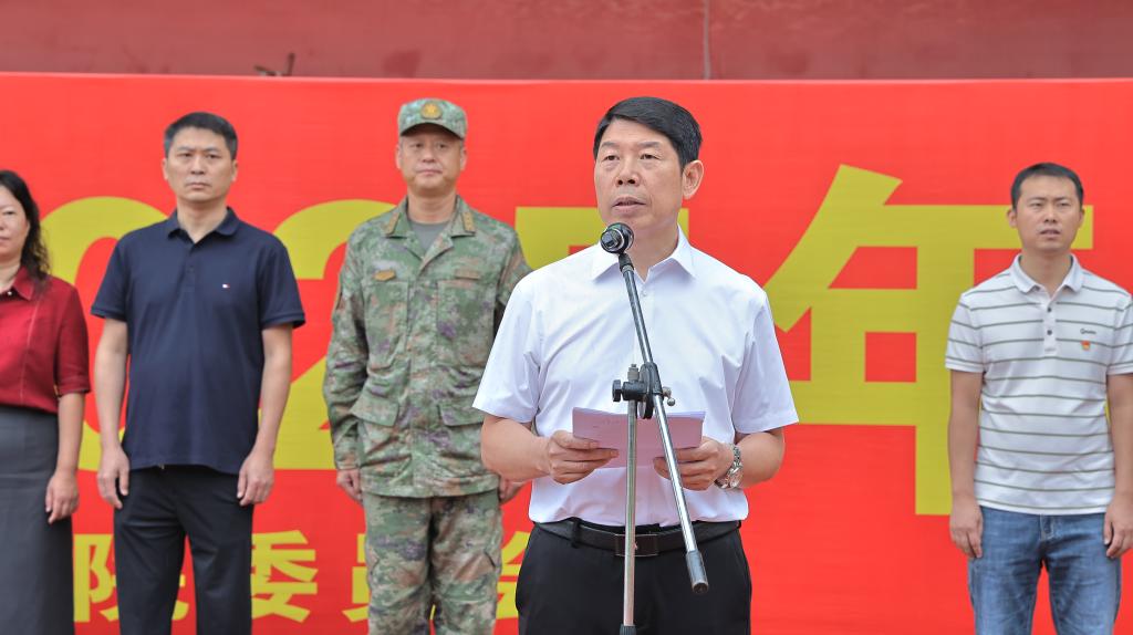 原国防教育协会学生干部、国旗护卫队副队长,经济与管理学院2021级国际经济与贸易专业学生杨思源作为入伍新兵代表发言,他表示,将牢记母校教诲,不负韶华、不辱使命,在军营中淬炼成钢,用青春和热血书写强军报国的壮丽篇章。