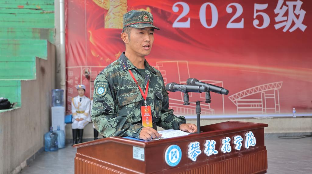 经济与管理学2025级的优秀学员严甜代表全体参训新生发言。她表示,军训完成“学生”到“成长者”升级,今后将把训练养成的好作风带进学习与生活,尽快适应大学节奏。
