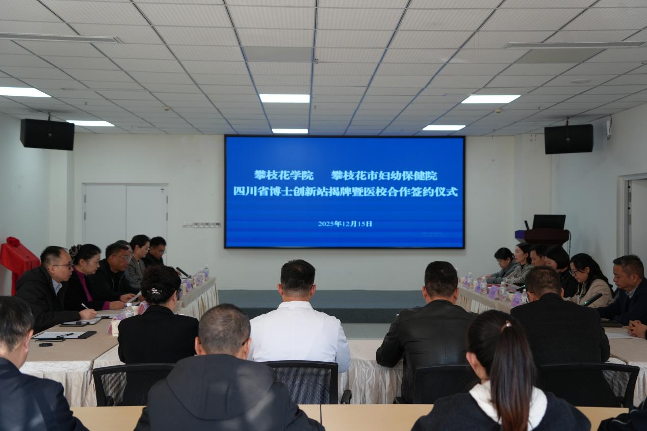 1215日,我校与攀枝花市妇幼保健院联合举办的四川省博士创新站揭牌暨医校合作签约仪式在市妇幼保健院门诊二楼会议室举行。校党委副书记刘立新,市妇幼保健院党委书记刘书岑,党委副书记、院长刘秀丽出席会议。