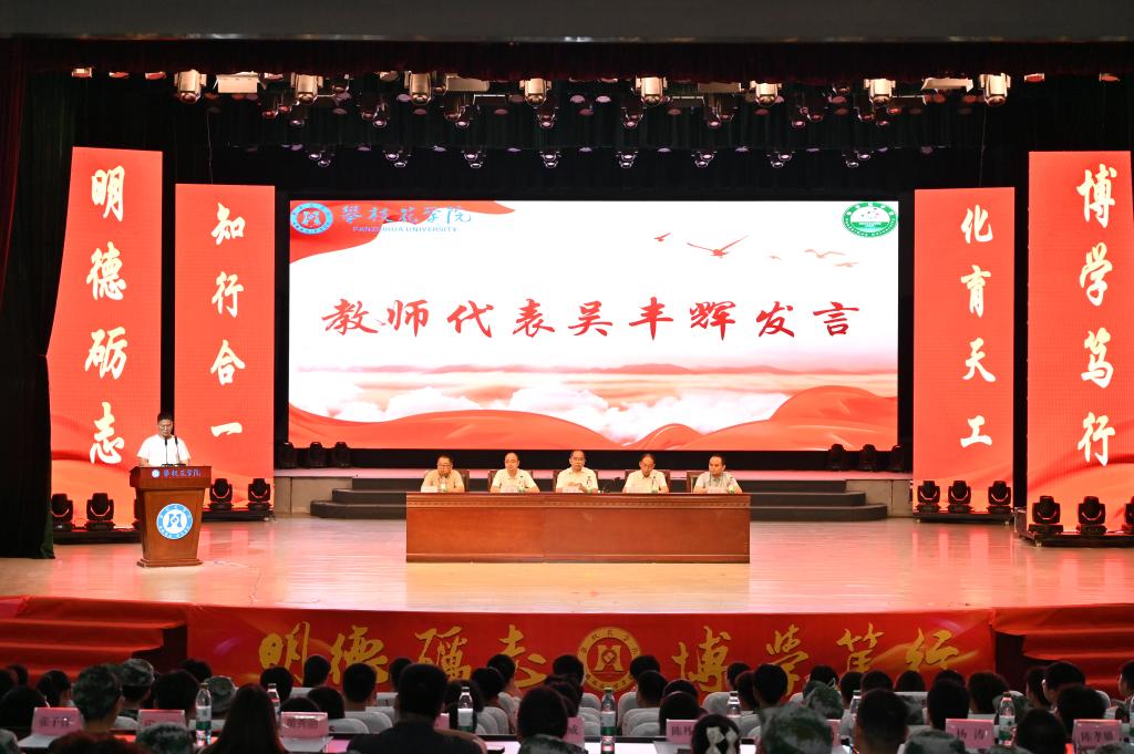 教师代表吴丰辉通过自己的学习经验寄语新生:在大学校园里,要明确学习目标和职业规划,培养良好的学习习惯,积极参加社会实践,保持积极乐观的心态。