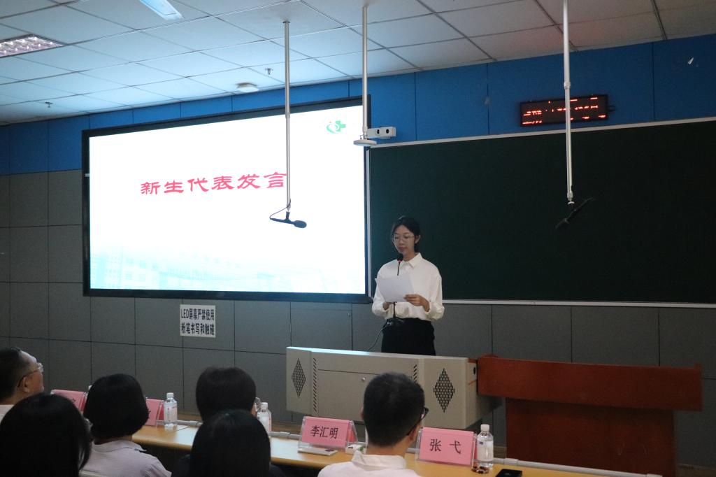 新生代表邹雨珂在发言中表达了对大学生活的憧憬和期待。她表示将秉持“自律自觉自强”的思想行动状态,树立明确的目标,培养强烈的责任感,坚持创新精神。