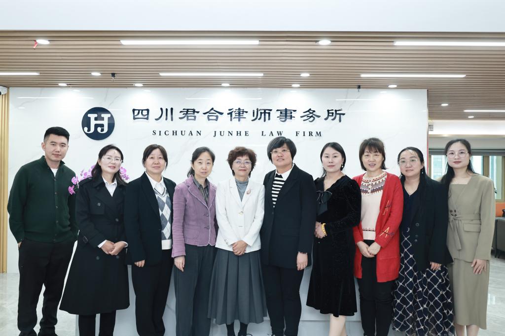 为深化产教融合、推进法学专业实践教学改革、拓宽学生实习、就业渠道,10月29日,法学院党委书记张琳带法学专业硕士生导师代表一行,赴四川君合律师事务所(以下简称“君合所”)参观交流活动。君合所副主任、高级合伙人廖晓丽一行热情接待并参与座谈,双方围绕校所合作机制建设、法学人才培养标准、业务协同发展等议题深入研讨,达成系列合作共识。