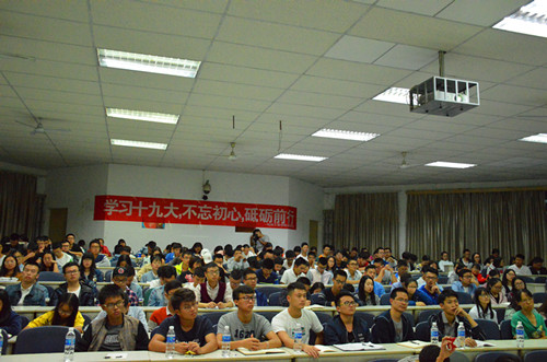 为深入学习贯彻党的十九大精神,进一步加强材料学院思想政治建设和学风建设,10月29日,材料学院在第一教学楼1-1举办了“学习十九大不忘初心砥砺前行”党组织生活会。材料学院领导、学生党员、发展对象、入党积极分子、各年级代表以及团委学生会成员近300名学生参加本次活动。